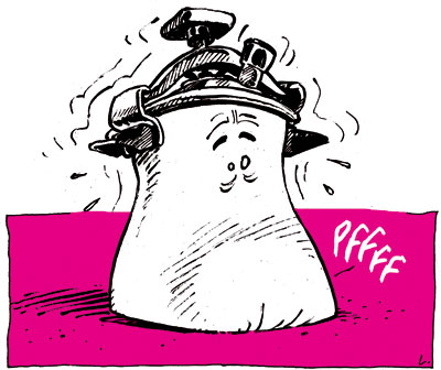 Quand la soupape de la cocotte chuchote, chacun sait qu’il faut alors régler la flamme si l’on ne veut pas que ça brûle. Il est alors possible de laisser mijoter tout en surveillant de temps à autre.