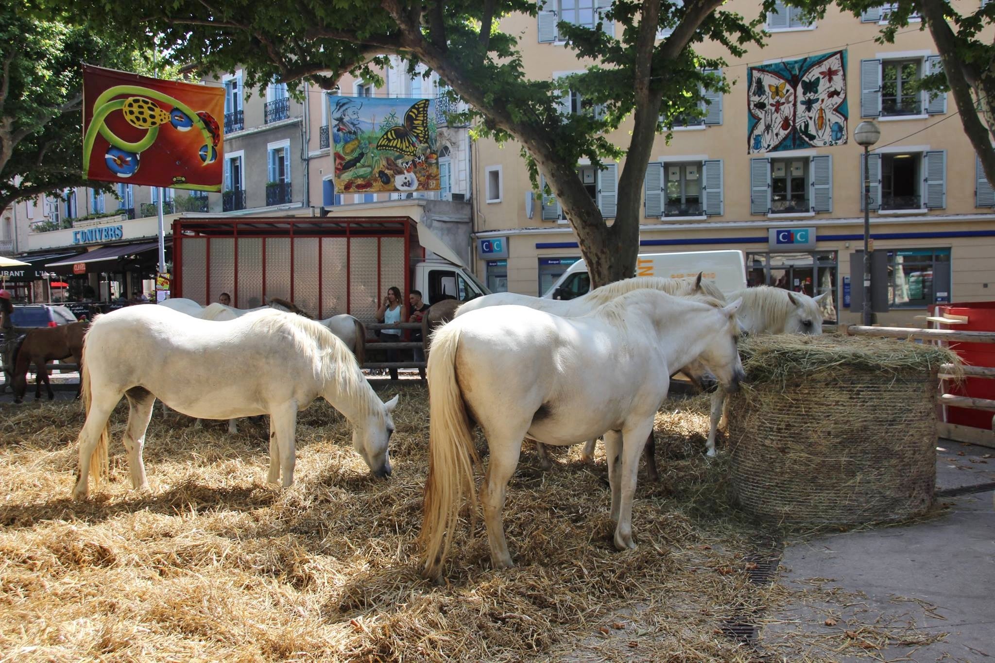 Le vendredi soir c’est encadré par des gardians à cheval que tout ce troupeau a traversé la ville.