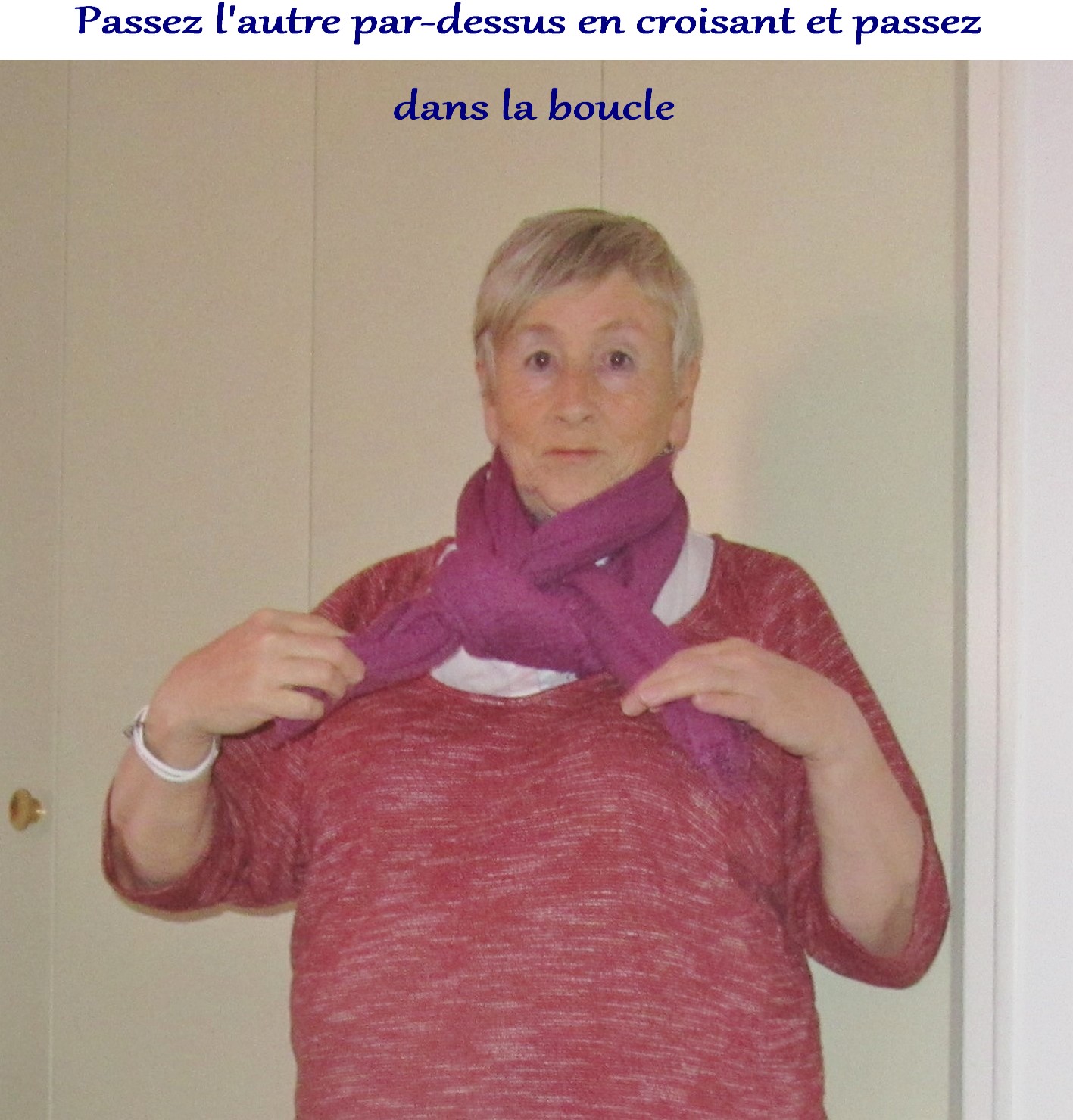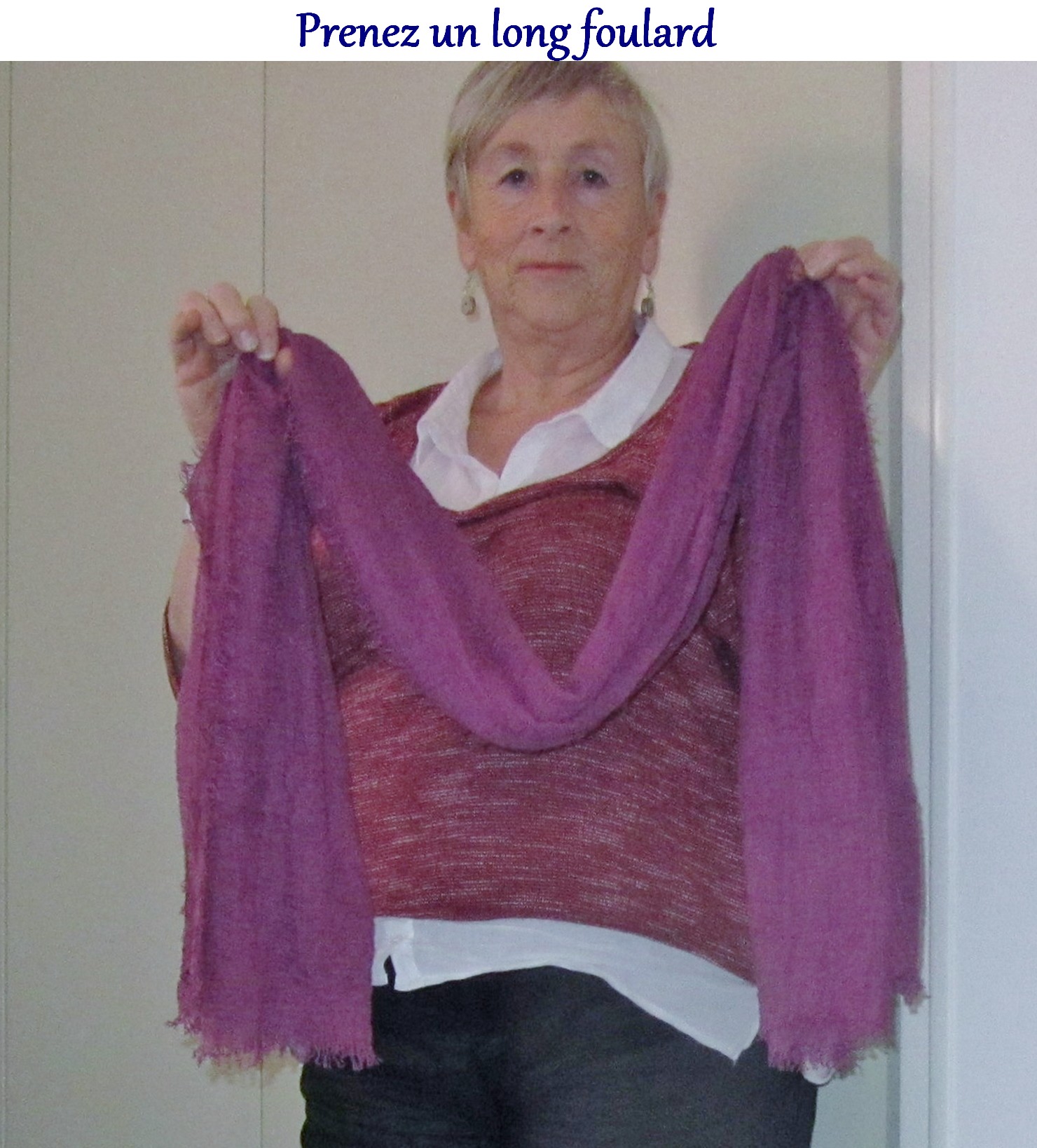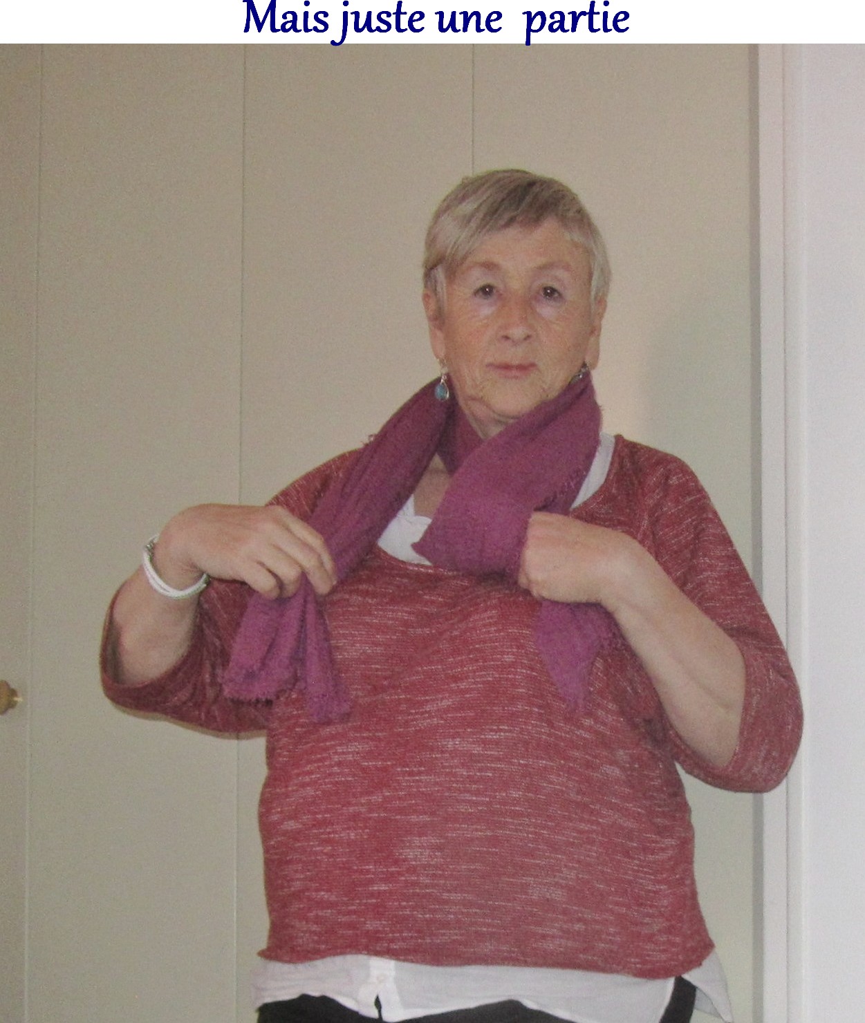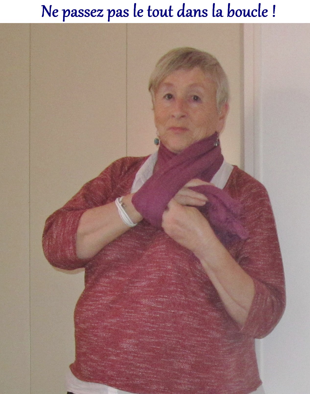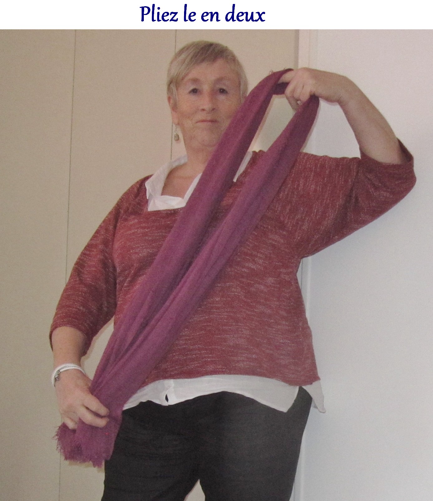 Ayant assisté à un atelier colorimétrie j’ai aussi appris une autre façon de nouer un foulard, je vous montre.