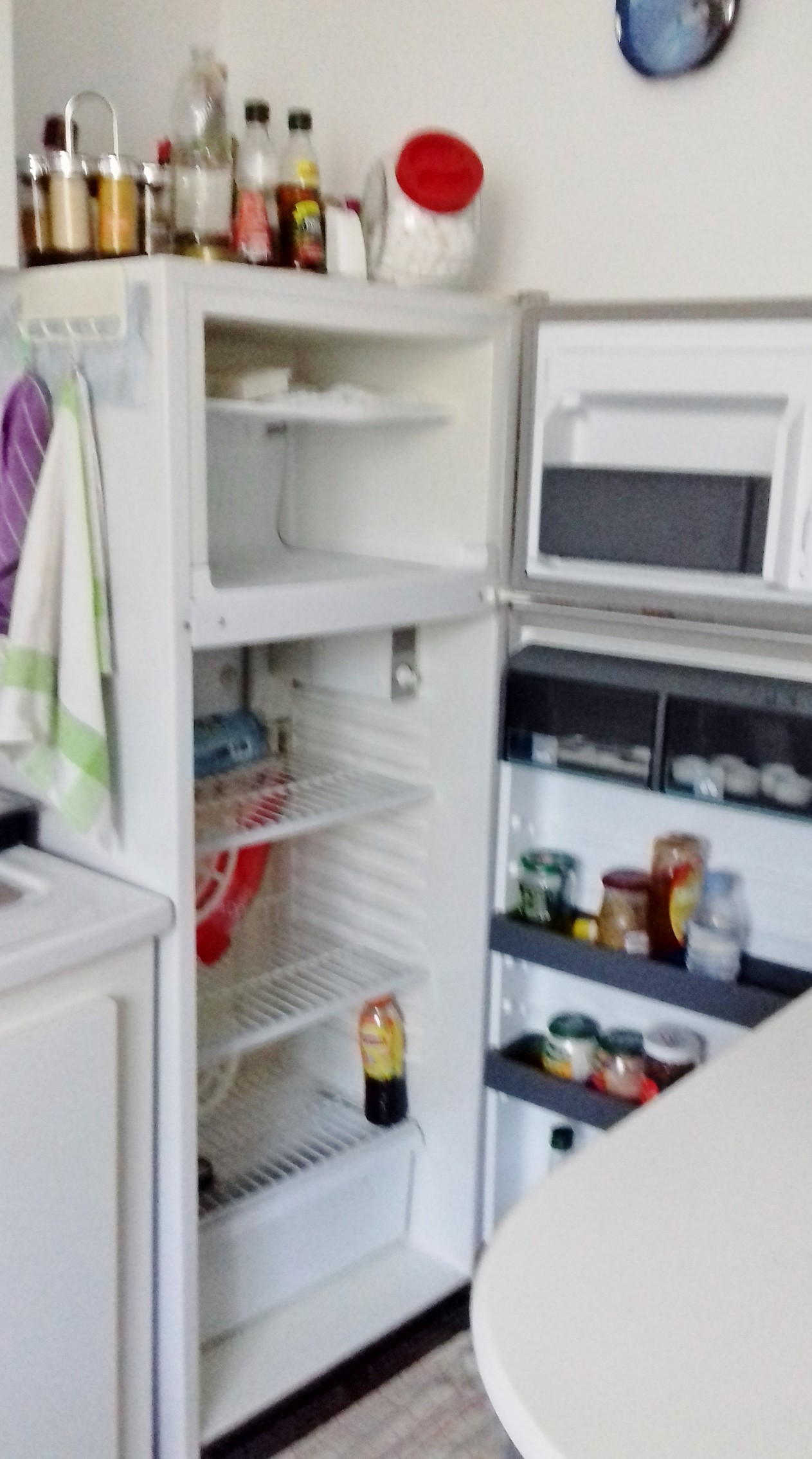 Voyant le frigo si vide j’avais prévu d’aller faire des courses puis me suis dit qu’après tout c’était le bon moment pour un nettoyage à fond ! J’ai donc commencé (dès mon réveil) par brancher le frigo de secours.