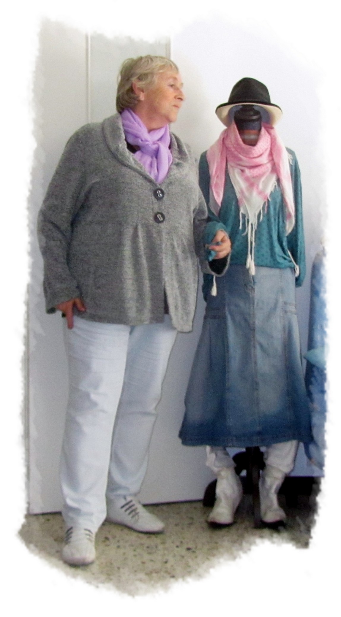 Voilà comment j’étais habillée ce matin mardi 17 octobre pour aller à la radio. Une fois arrivée au studio j’ai vite retiré ma veste et le foulard qui me donnaient trop chaud.