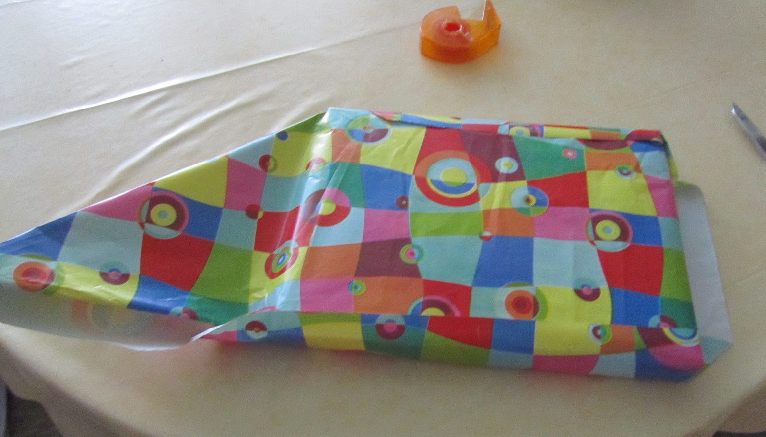 Un anniversaire en principe ça se prépare à l’avance, oui mais parfois on s’y est pris en retard alors … Bref j’étais invitée à l’anniversaire d’un de mes petits fils et me voilà pas à court de papier cadeau ? Comment faire avec ça ?