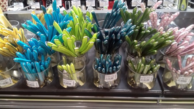Et que dire de mes fourchettes ! Donc j’avais pensé en trouver de la même marque mais hélas … Me voilà devant ce rayon …