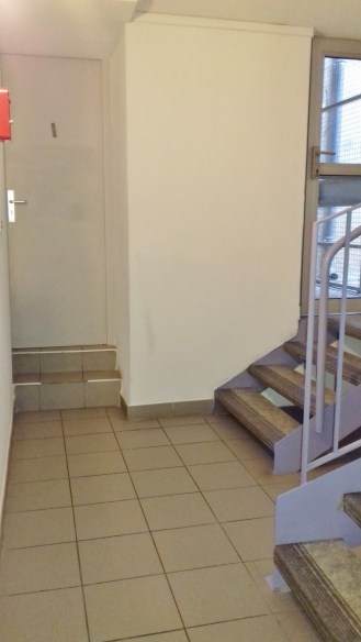 Ce jeudi 20 septembre j’ai eu les clés de mon nouvel appartement, ah ce jour était attendu hein ! Allez on revisite et cette fois il est vide. Voici mon entrée, la porte ne fait que 70cm de large, soucis pour certains meubles mais ça devrait aller.