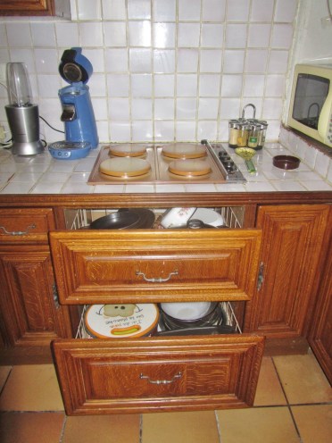 Après un mauvais départ, raconté dans l’article précédent, j’ai commencé à pouvoir déballer et mettre en place. Oh ça ne s’est pas fait en un jour bien sur, des choses ont été changées de place plusieurs fois déjà. L’urgence était de vider des cartons encombrants. J’ai donc commencé par la cuisine.