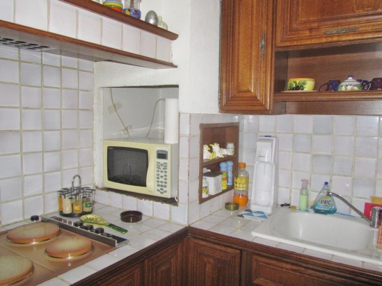 Plus de four mais j’ai la place pour le micro ondes, bon ça fait moche, il faut que je trouve à cacher le dessus sans couvrir les aérations.
