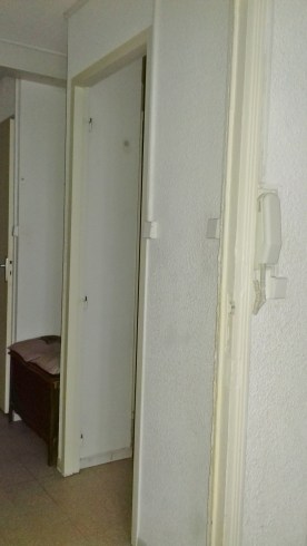 Après les petits soucis des 1ers jours, voir cet article, je continue de m’installer doucement. Il arrive que des portes se trouvent mal placées, comme celle de la salle d’eau par exemple, au lieu de s’ouvrir coté couloir elle s’ouvrait coté intérieur. Ce qui fait qu’il fallait entrer, fermer la porte pour arriver à ouvrir celle de la douche ! Alors hop virée la porte !