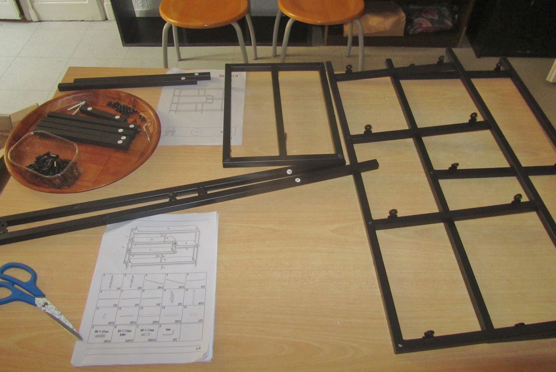 Presque fini mais juste sous ma main droite, les barres N°12 n’entraient pas, j’ai du desserrer le cadre pour y arriver. Et poser enfin les 2 dernières en haut. Et 26 vis plus tard (à la main) … + celles que j’ai du refaire à cause de mon erreur …