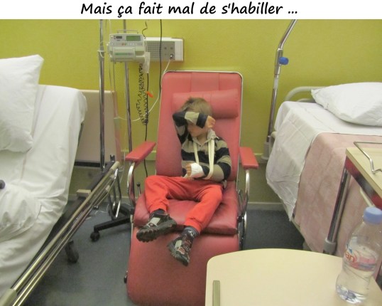 Il n’a pu sortir que le lendemain matin et ce plâtre là il l’a eu pour 3 mois maintenant ! Avec toujours une visite/radio chaque semaine pour vérifier et on espère que ça ne bougera plus ! Et ça n’a plus bougé, mais que c’est long 3 mois !