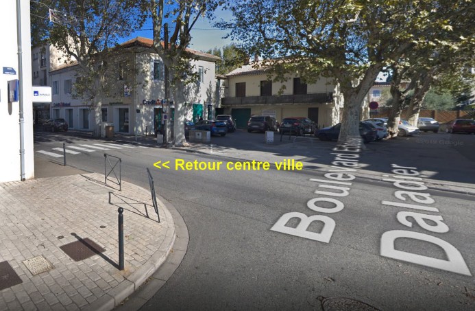 Continuez tout droit, vous arriverez sur une grande place avec parking