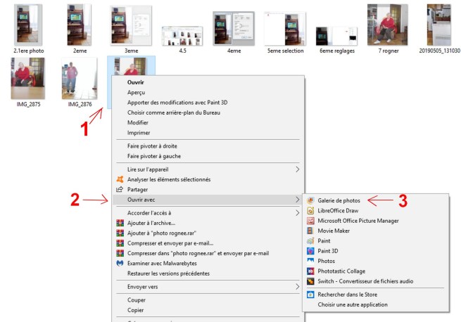 Dans vos dossiers vous avez plusieurs possibilités pour ouvrir une photo, exemple. Un clic droit dessus ouvre le menu
