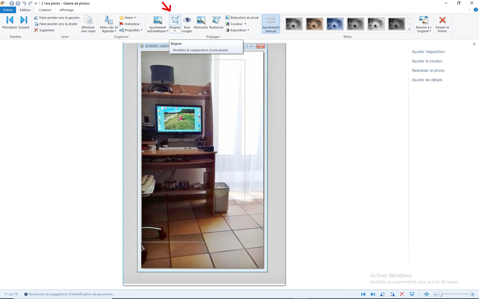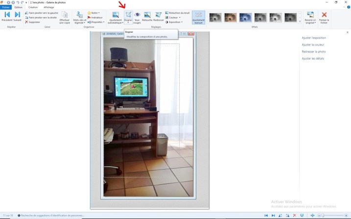 Vous pouvez passer directement à la suivante c’est enregistré de suite. Maintenant pour rogner c’est simple