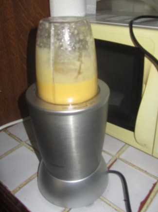 Que j’ai mises dans le bocal du mixer avec du jus de mandarines et un soupçon de miel pour adoucir