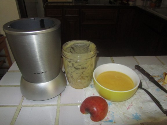 De temps en temps j’achète des fruits, encore faut-il les manger ou en faire quelque chose. Ce que je fais quand je vois qu’il est temps. Donc ce matin je n’ai pas pris mon épluche fruits car la dernière fois la pomme était si molle qu’elle a fondu dans mes mains !
