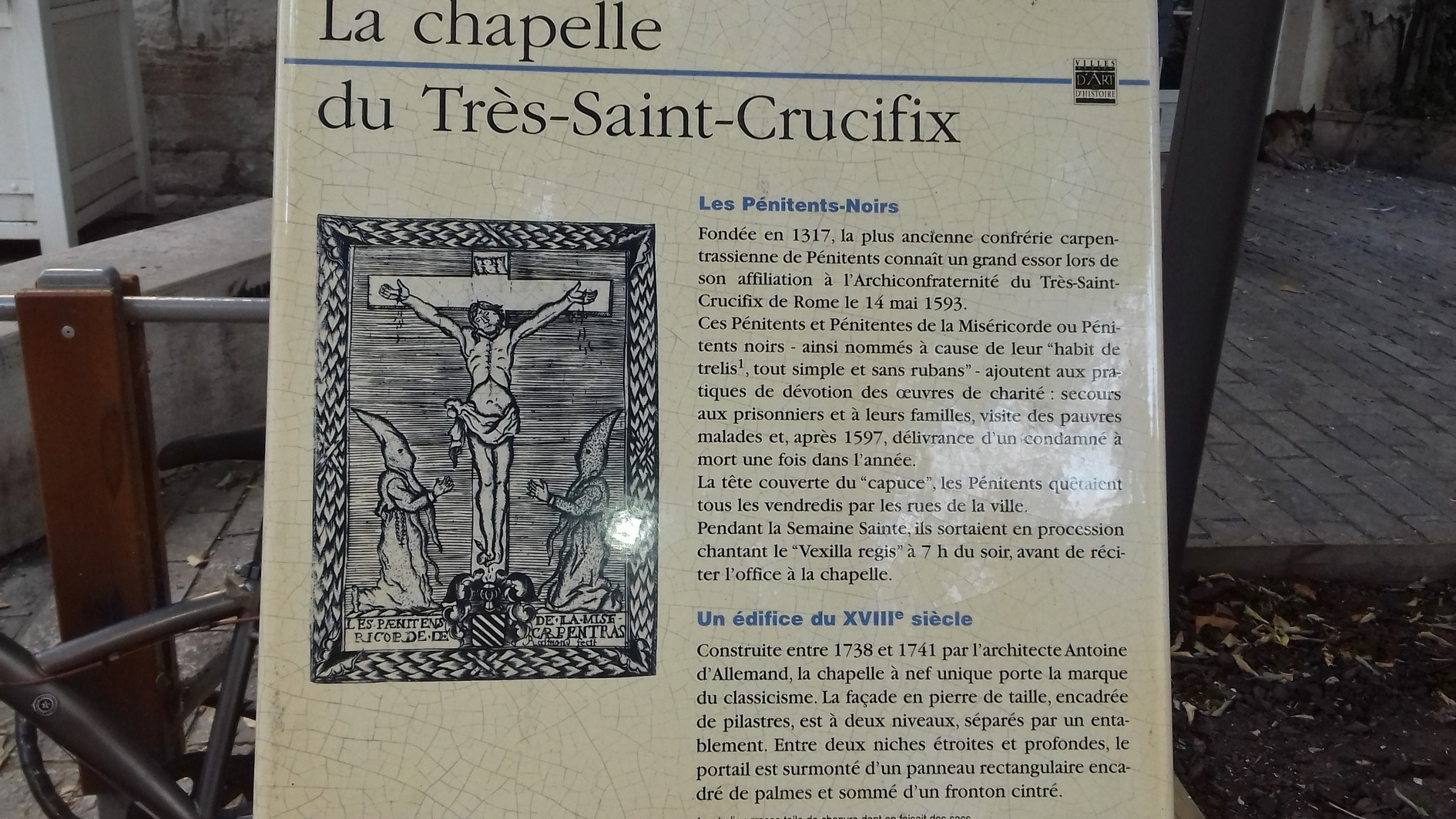 Cette rue longe une des entrées de la chapelle des Pénitents blancs