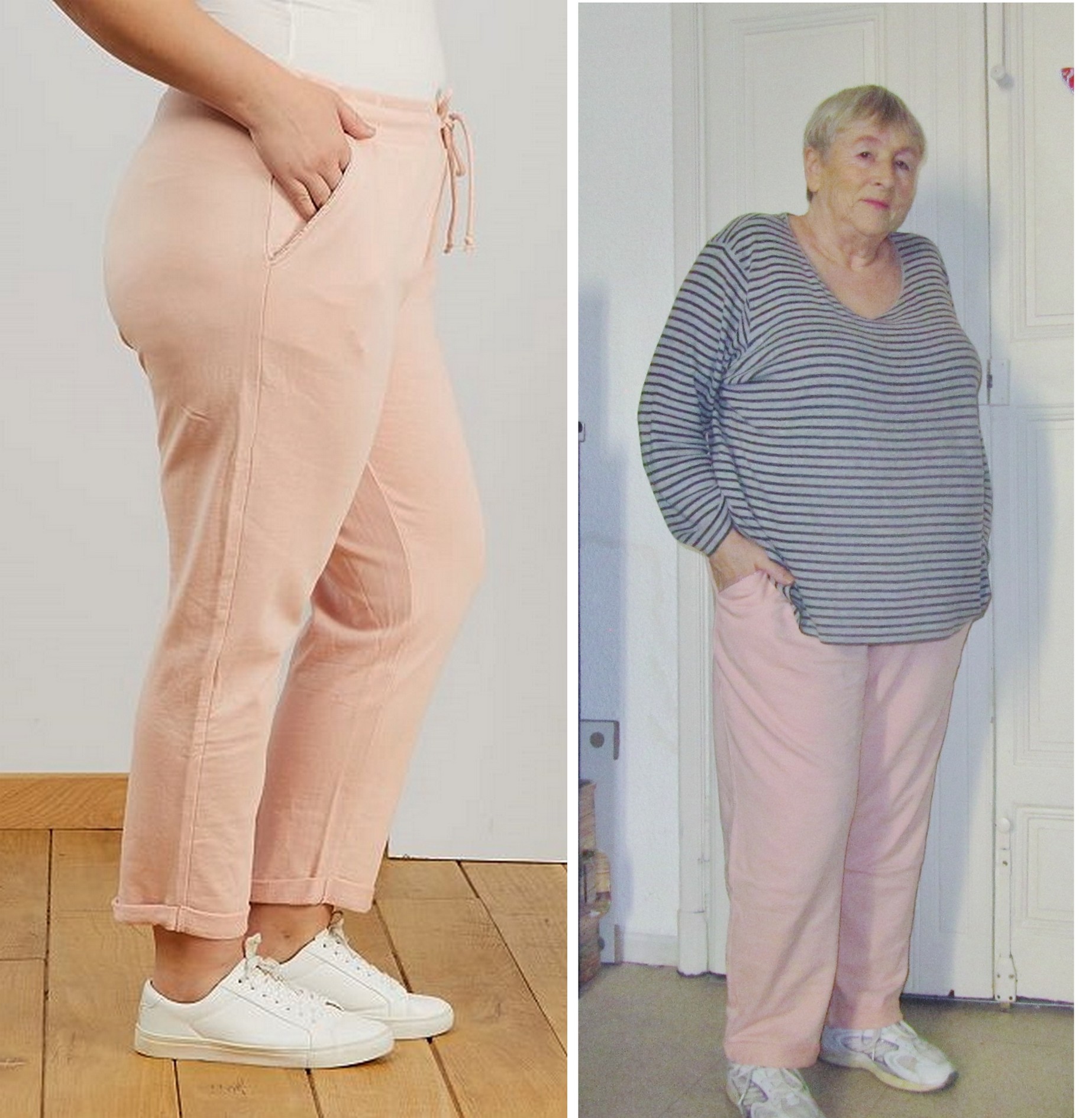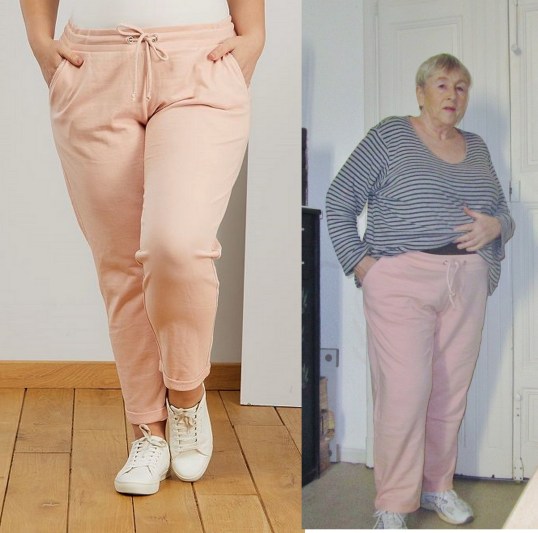 Sur le site ça dit rose, mais la couleur n’y ressemble pas, ma photo oui. Pantalon de sport heu oui si vous le dites, mais n’allez pas croire que je vais m’y mettre hein !