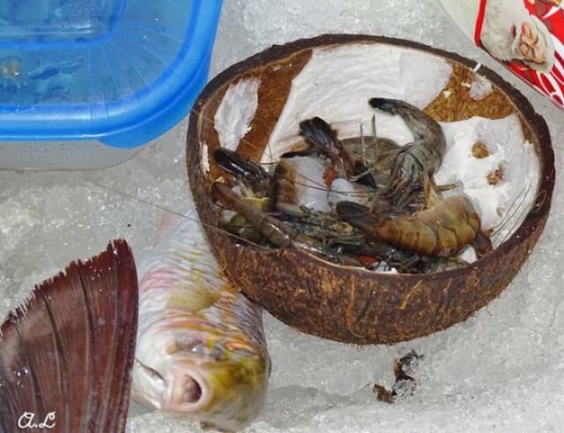 Des chevrettes (Une chevrette désigne une crevette d’eau douce dans les îles d’Océanie française).