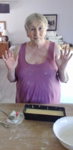 De retour chez fiston, il m’a embauchée comme assistante patissière, pas trop mon truc. Le paquet de farine s’est ouvert et hop j’ai blanchi !