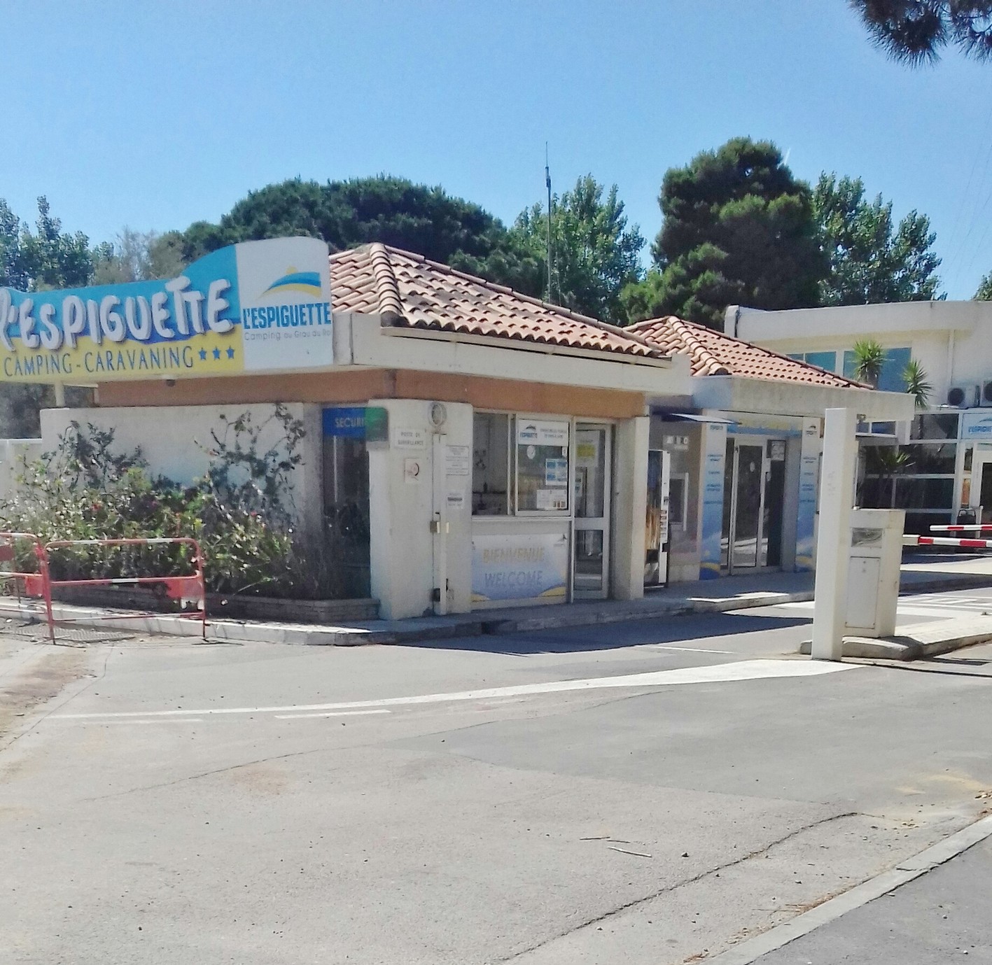 Le début du chemin caillouteux qui y mène est juste avant l’entrée du camping « L’Espiguette »