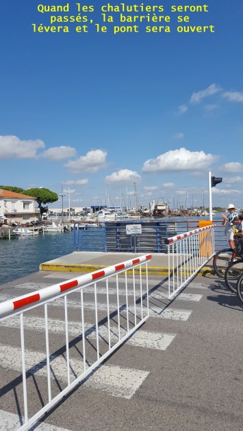 La veille nous avions eu envie, mon fils et moi, d’aller faire un tour sur l’autre rive, pour cela il faut traverser le pont tournant. Ce sera pour après le repas prévu au restaurant de la plage, comme en juillet dernier. Face à la mer.