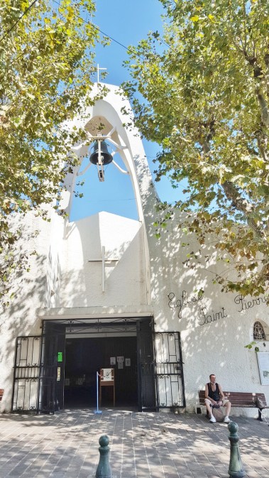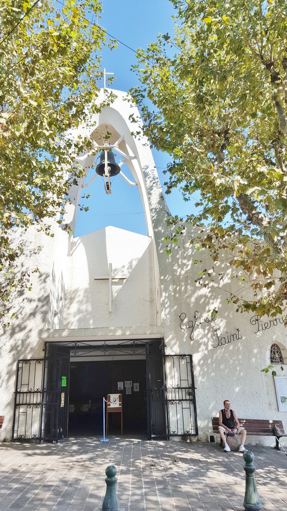 Et enfin nous arrivons à l’église St Pierre sur cette belle place où nous sommes restés un moment, à l’ombre et au calme.