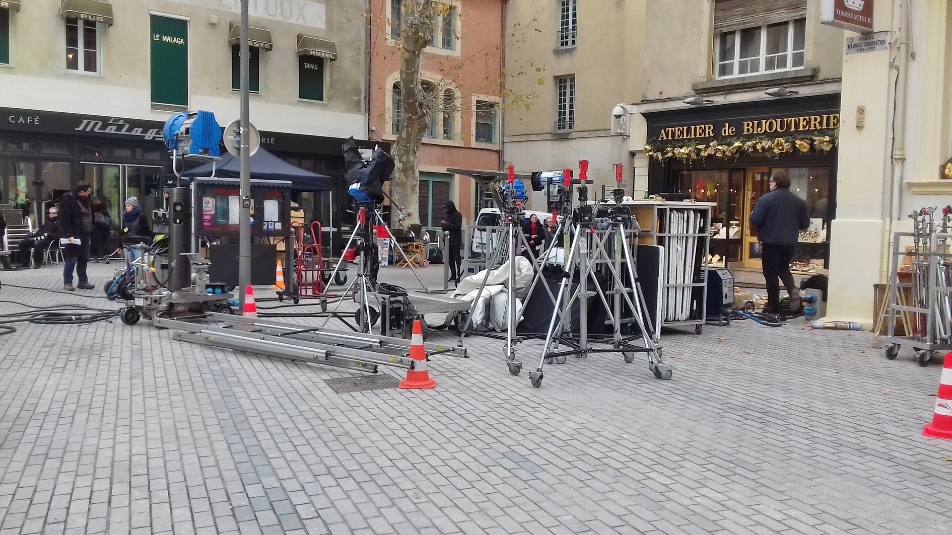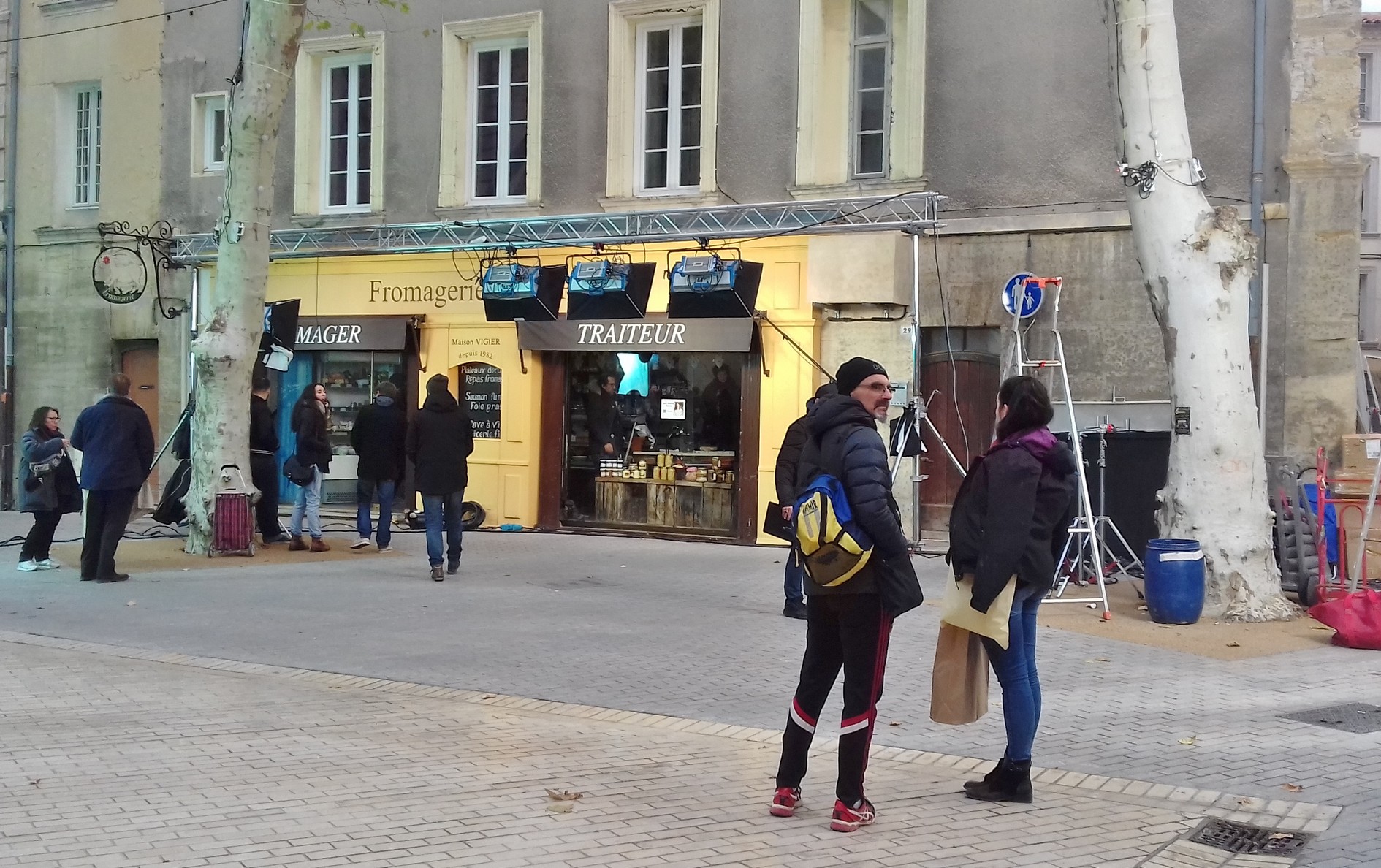 Par contre à un moment donné une jeune femme à coté de moi, avec une radio dit : « Ah la dame est dans le champ ? » et me demande alors de quitter le cadre. Dommage j’aurai aimé voir le tournage, j’attendrai comme vous !
