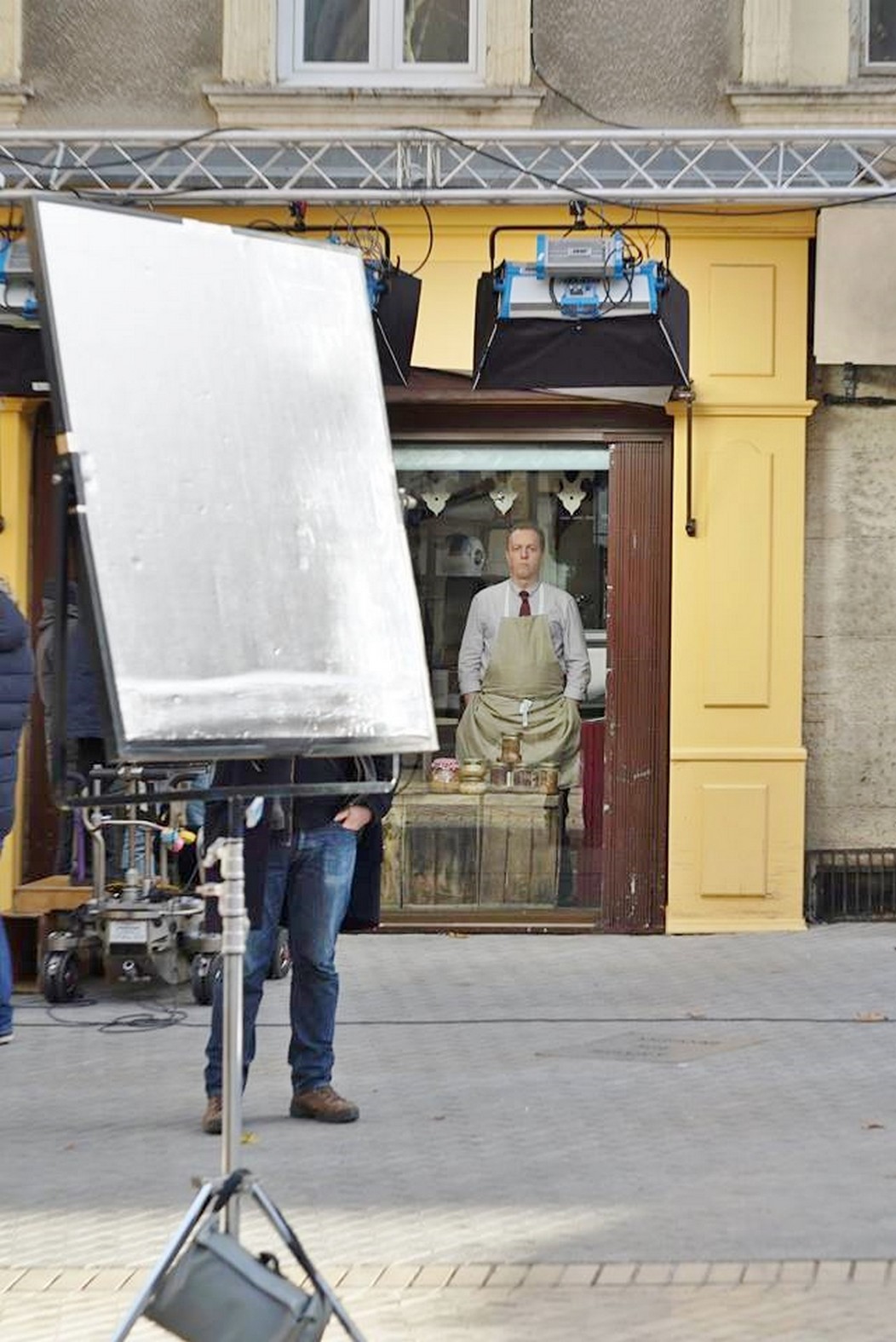 Du coup j’ai demandé à la dame âgée son rôle dans tout ça elle répondit : « Je suis la grand mère qui traverse la place avec son chien et colle une affiche. ».