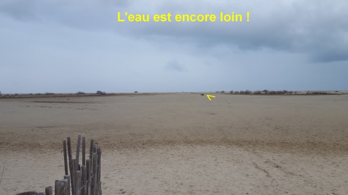 Mais alors en face y a de la marche à faire ! Voyez ces petits points noirs fléchés de jaune, hé bien ils sont encore loin de l’eau.