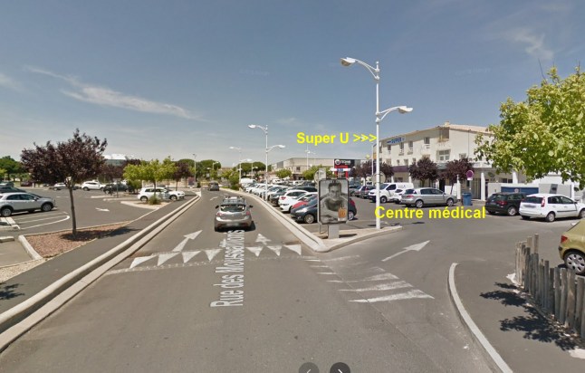 Si vous continuez sur la droite vous arriverez à Lidl et le drive de Super U. Bon vous pourrez revenir quand même vers le parking. Alors possible de se garer devant le centre médical qui est juste avant celui du magasin.