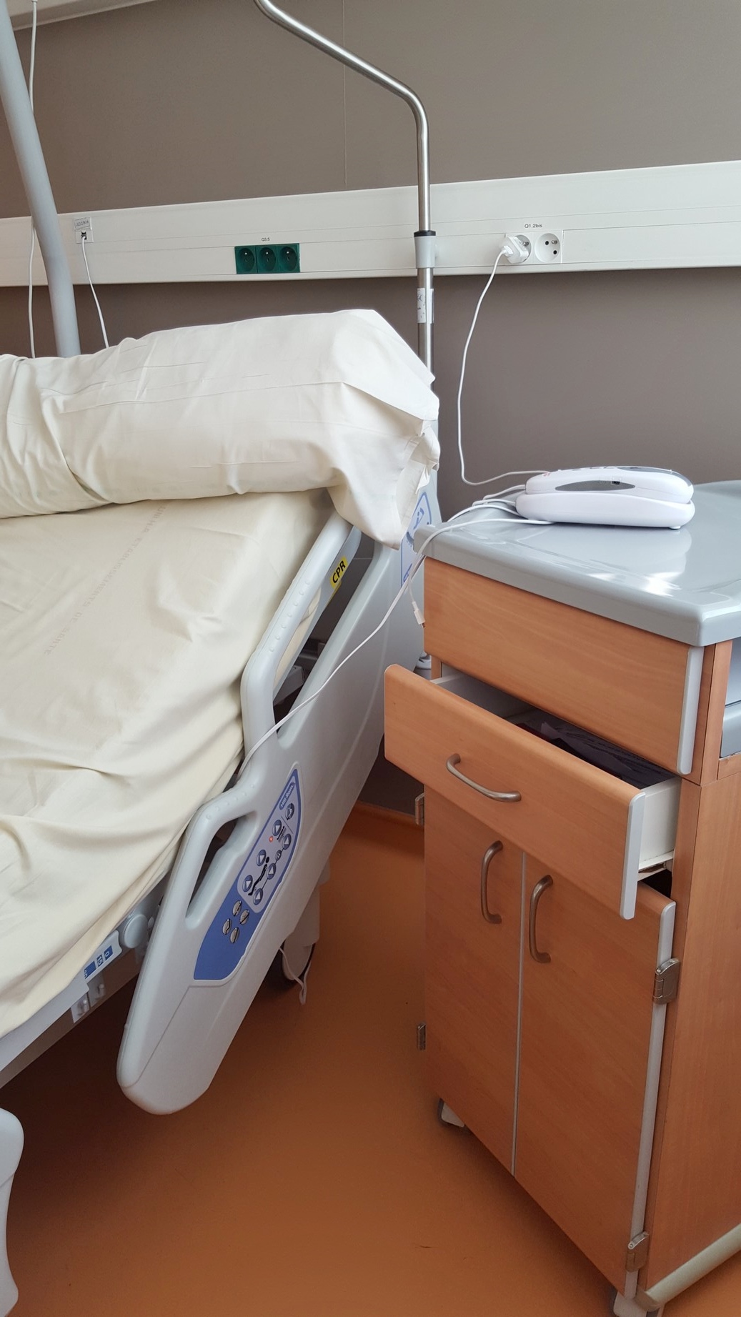Mon entrée à l’hôpital était prévue à 8h, à jeun depuis la veille au soir. Moi qui dort jusqu’à 9h d’habitude… Le taxi est venu me chercher à 7h et dès 7h45 l’équipe de choc était dans ma chambre avec les engins, ECG, tension, prise de sang et questionnaire. Quand j’ai dit que j’avais déjà répondu à tout ça le mois dernier on m’a dit que les dossiers n’étaient pas gardés.