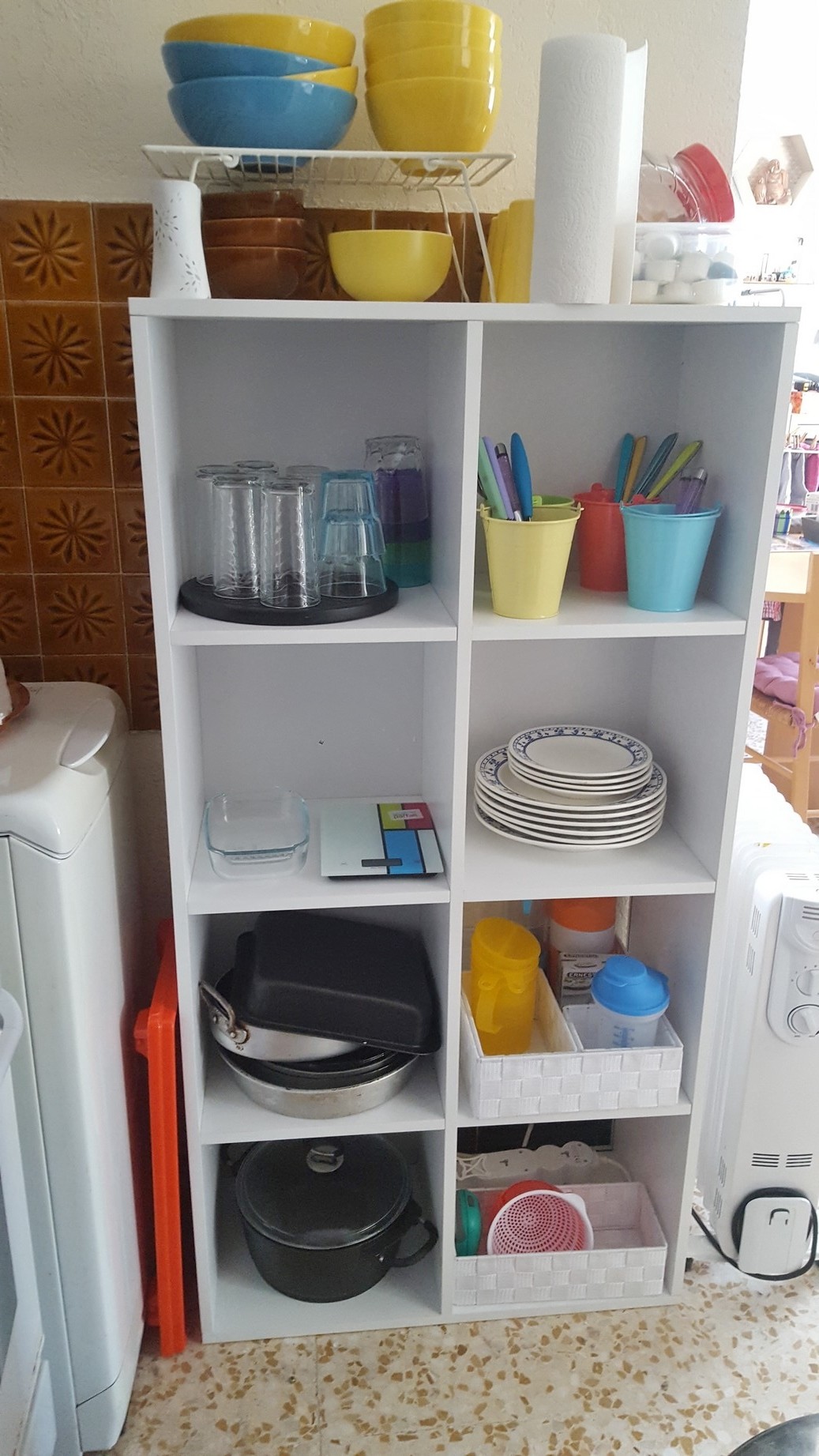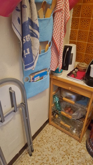 Je ne vois pas trop l’utilité de la chaise pliante pour poser quelque chose dessus mais bon, c’est vrai que c’est pas évident quand on a pas beaucoup d’espace pour le rangement…
