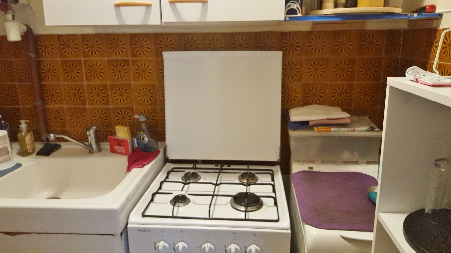 Alors avec maintenant cette mini cuisine je galère forcément encore plus. Il faut calculer si j’ai besoin de la gazinière ou du lave linge car les deux sont côte à côte.