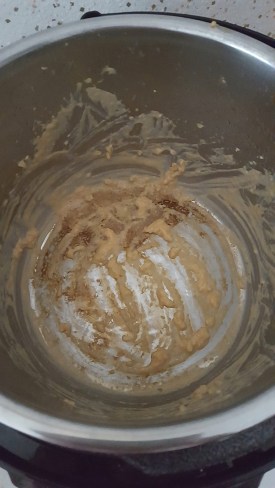 Histoire d’aromatiser un peu j’avais ajouté 2 cuillères de sirop d’érable, ce qui donne cette couleur marron.