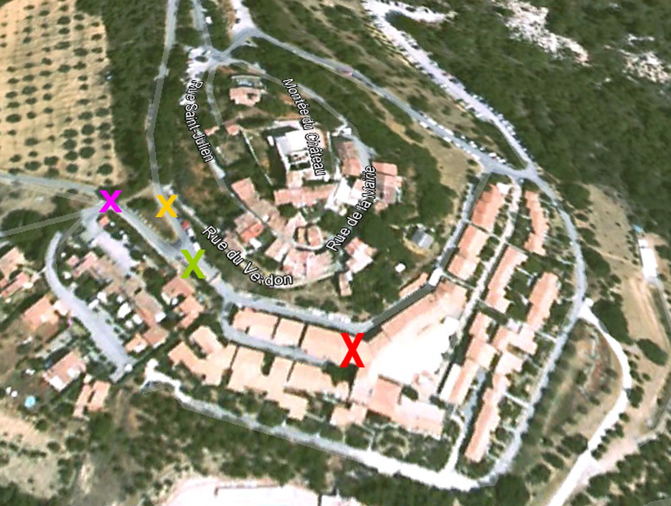 X est l’entrée du club – X là où je devais me garer – X l’entrée de la zone piétonne – X Ma chambre