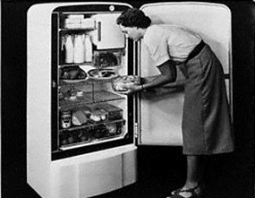 Il me semble que le 1er vendeur était la marque « Frigidaire » ce qui très vite s’est transformé en nom de frigo, plus court que réfrigérateur !