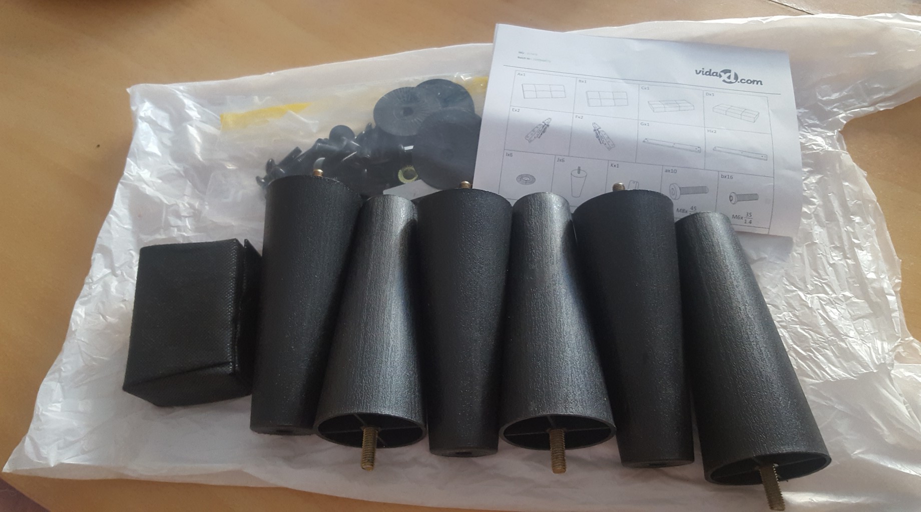 Donc après avoir bien galéré pour monter ce canapé, avec fiston on songeait à mettre des parpaings sous les pieds pour le rehausser, ben oui mais c’est moche et pas pratique, puis dangereux pour les orteils. Je sais j’ai déjà testé. Je ne pouvais m’y résoudre.
