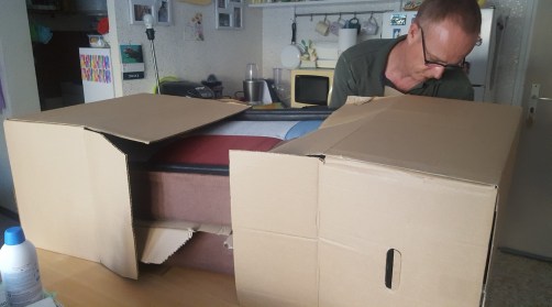 N’ayant pas trouvé de carton aux bonnes dimensions il a fallu bourrer le dessus