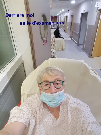 Cette fois on me dirige dans une ancienne salle d’attente, nous y sommes 4 dans une semi obscurité, sauf la lumière vive du couloir. Et en plus c’est à un croisement de couloirs où ça circule beaucoup. Mais j’entends des hurlements qui me rappellent trop bien que c’est une fois de + une Alzheimer, suis abonnée je crois. C’est pas encore là que je vais pouvoir dormir. Après avoir tenté de la calmer elle a été conduite ailleurs, ouf. Mais vite remplacée par un homme. Un autre était là aussi mais s’est barré sans rien dire.