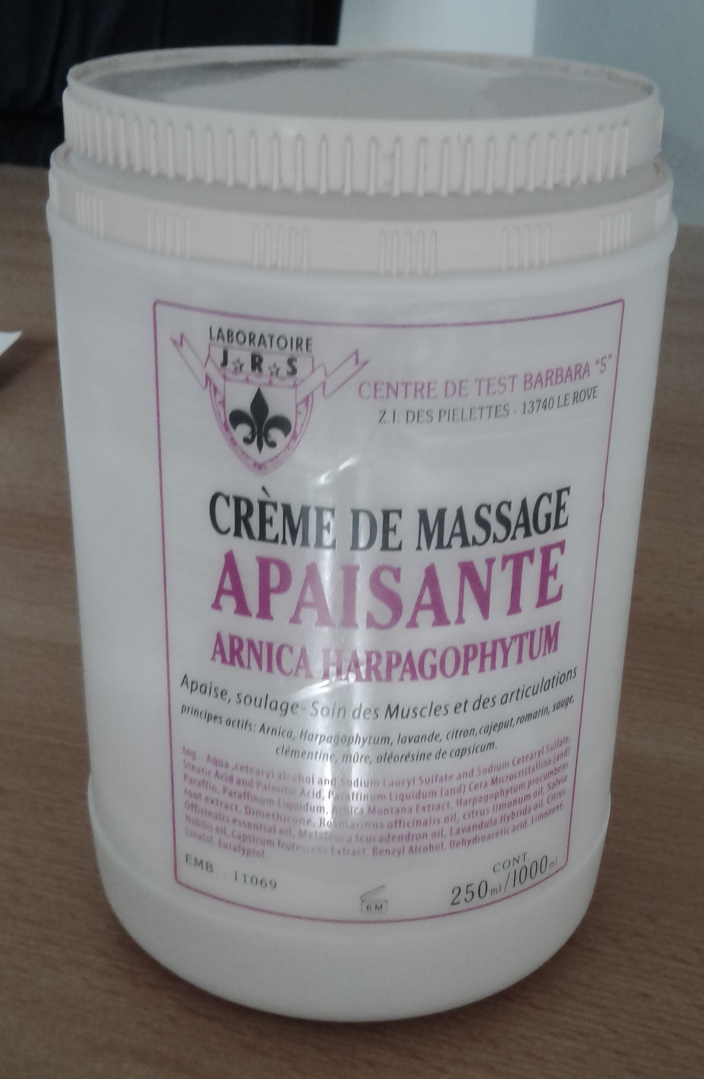 Enfin ça c’est le pot que j’avais pris en photo chez le kiné et j’ai trouvé la même chose en tube à ma pharmacie. Donc un massage en me levant.