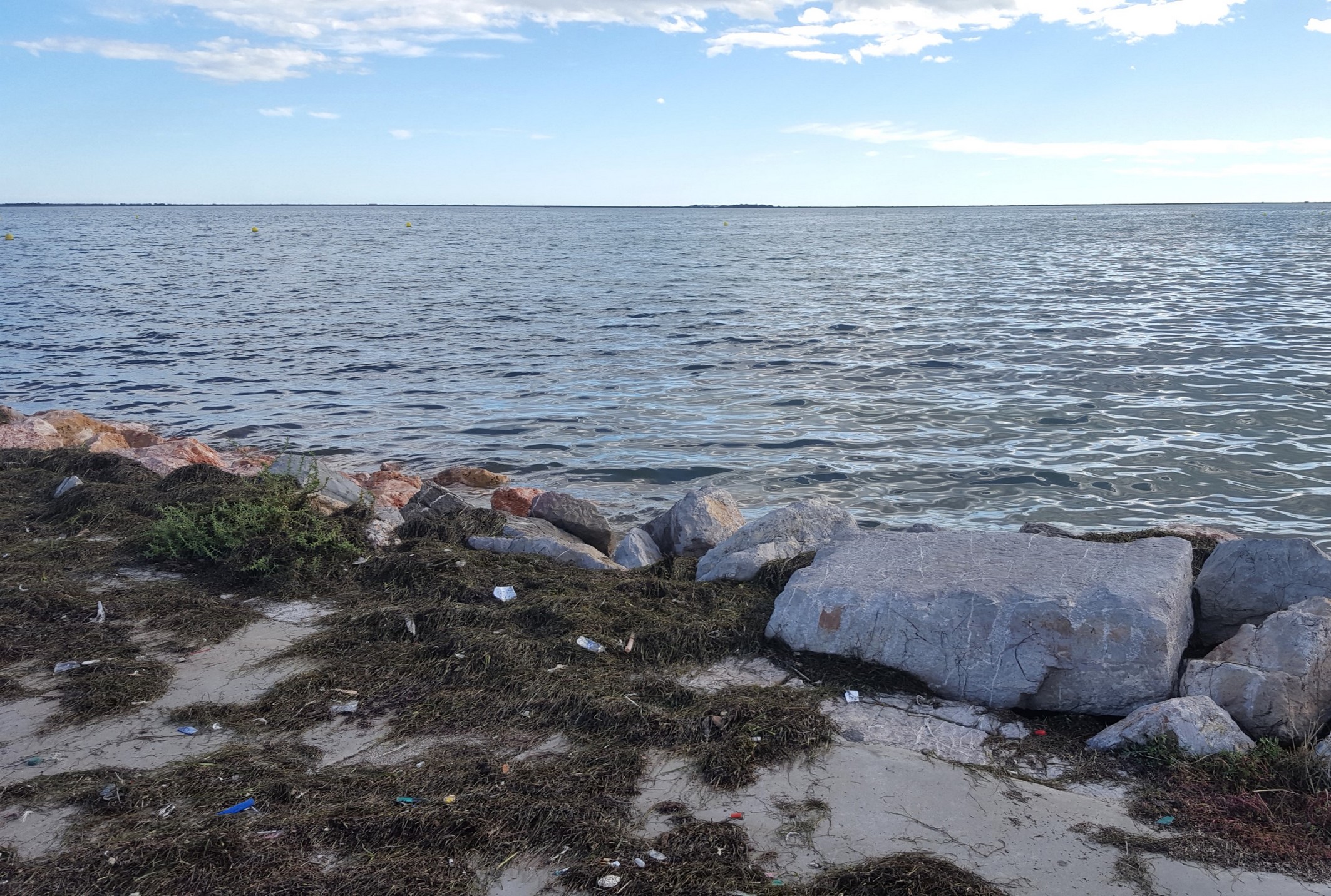 Mais c’est quoi ça me suis-je dit ? C’était la 1ère fois que je voyais ça. En allant voir plus loin j’ai compris que ça venait de la mer, elle a renvoyé tout ce qu’elle avait reçu ! Et en agrandissant la photo vous allez le voir !
