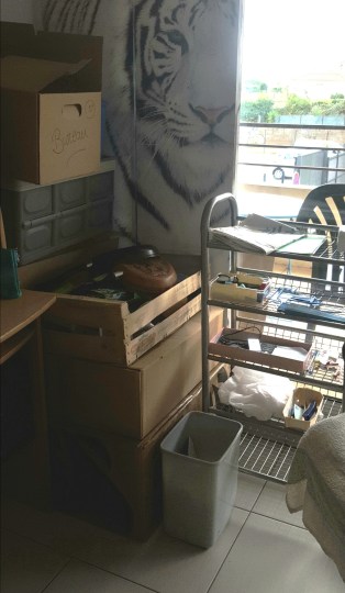 Dans 6 jours fiston m’emmène au studio, vide, le camion viendra le lendemain, je vais passer la nuit seule dormant dans un fauteuil. J’aurais le temps de prendre des photos et mesurer un peu, j’espère pouvoir tout entrer dans mon 31 m2.