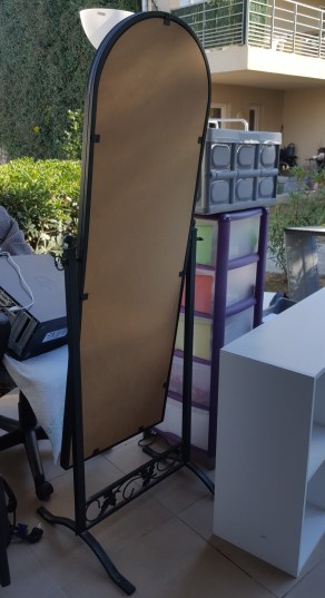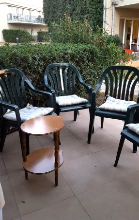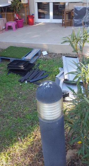 Plusieurs fois j’ai déplacé aussi le salon de jardin, celui que j’avais en arrivant mais aussi celui qui fait partie de mon studio, une table et 4 chaises, forcément ça prend de la place tout ça.