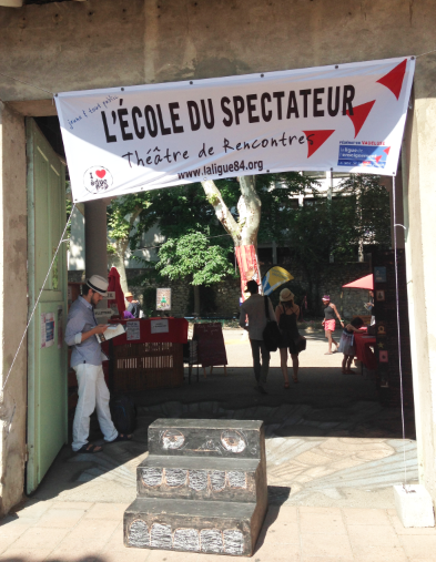 J’ai découvert un lieu magique. Juste assez loin du centre ville pour se sentir à l’aise dans l’école primaire Pouzaraque en Avignon qui est également « l’école des spectateurs » proposée par « la Ligue de l’enseignement 84 » depuis 10 ans en été.