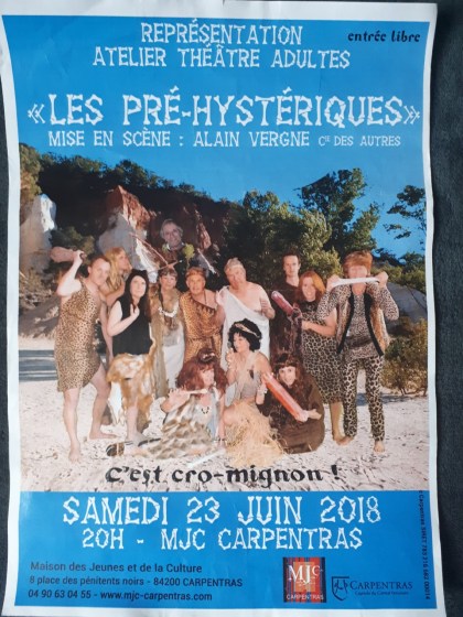 Toujours est-il que le public a beaucoup ri, moi la 1ère. On en redemande ! Cette troupe d’élèves travaille toute l’année pour son unique spectacle. Il faisait très chaud dans cette petite salle, j’avais une pensée émue pour les comédiens sous les projecteurs et affublés de perruque et autres artifices. Faisant moi aussi du théâtre je connais ça.