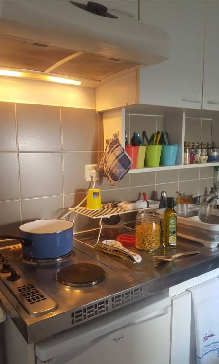 Je suis assez contente de l’autre coté de ma cuisine, enfin j’en une vraie, avec une hotte qui m’avait bien manquée avant.