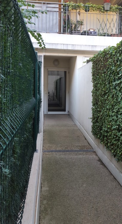 Et ça commence par le très lourd portillon que je dois pousser d’un bras en passant mon déambulateur.