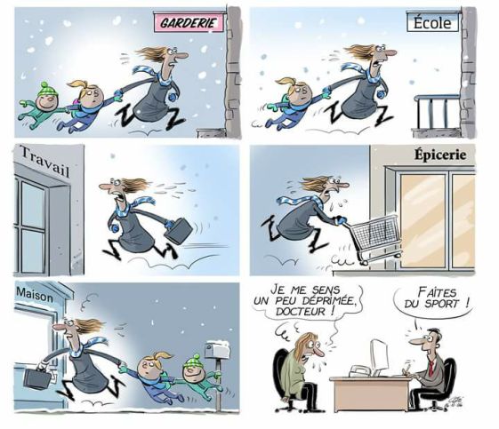 A 17h non bien sur ce n’est pas fini. Elle ne rentre jamais directement chez elle. Selon les jours il faut récupérer les enfants déposés le matin, aller chez le kiné, faire des courses, assister à une réunion, conduire celui là à l’escalade, l’autre à son cours de guitare etc …