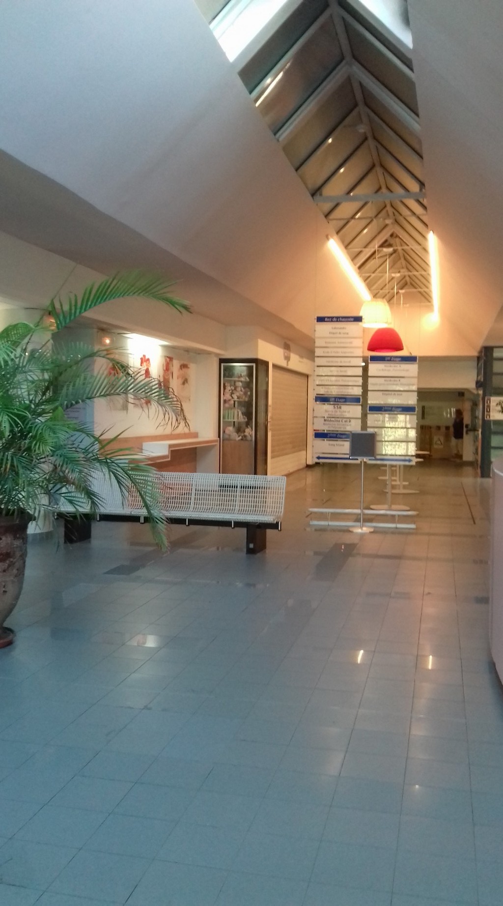Mon arrivée au CHU d’Orange le jeudi 12 septembre. Le hall est sympa, entre la cafétéria (vide à ce moment là ) et l’aquarium.