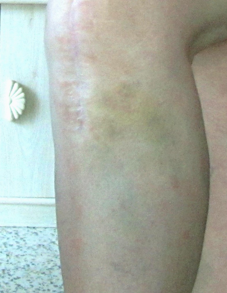 C’est mon hurlement de douleur qui a fait réagir la conductrice qui dit ne pas m’avoir vue. Elle a avancé et stoppé son véhicule puis est descendue me voir ainsi que sa passagère. J’étais encore debout, plaquée contre ma portière arrière et tremblant de tout mon corps et me tenant la poitrine coté gauche.