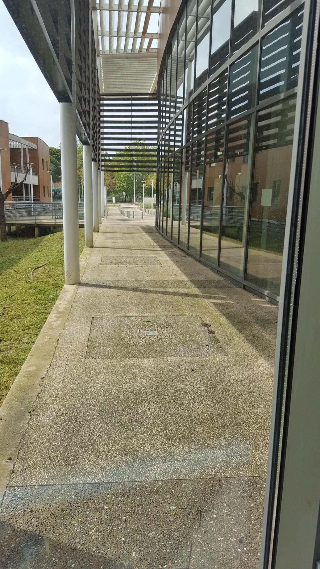 Photo prise de mon siège. Voyez en 3 pas on pourrait être à l’accueil mais non il faut faire tout le tour ! Par contre j’ai pu sortir par là et me suis tournée vers la gauche.